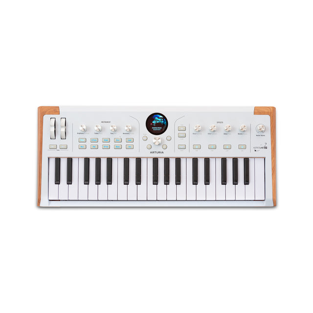 The AstroLab 37 is a forward-thinking stage keyboard that blends expressive performance features with standalone power in a highly portable format. With 37 slim velocity-sensitive keys and aftertouch, it offers the tactile control needed for both studio production and live performance, all without the need for a laptop. Built on Arturia’s Phi/TAE modeling technology, AstroLab 37 comes preloaded with 1,888 curated sounds across 48 built-in instruments, covering everything from analog polysynths and classic keys to cinematic textures and vocoder presets.