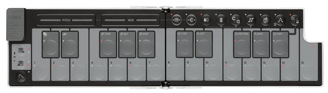 Two touch sliders for Pitch and Modulation, assignable to CC values or notes