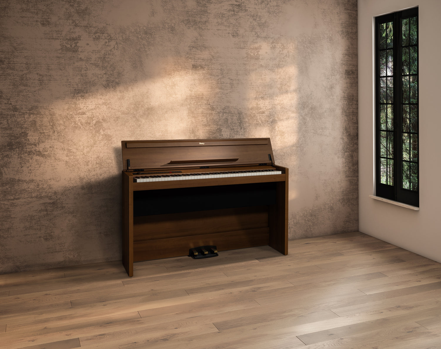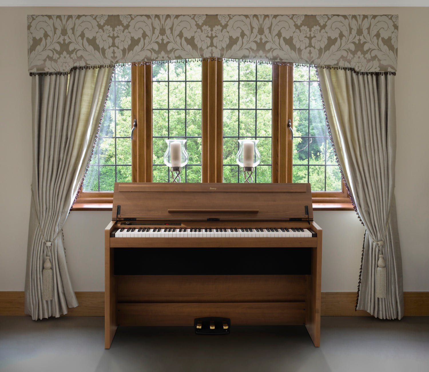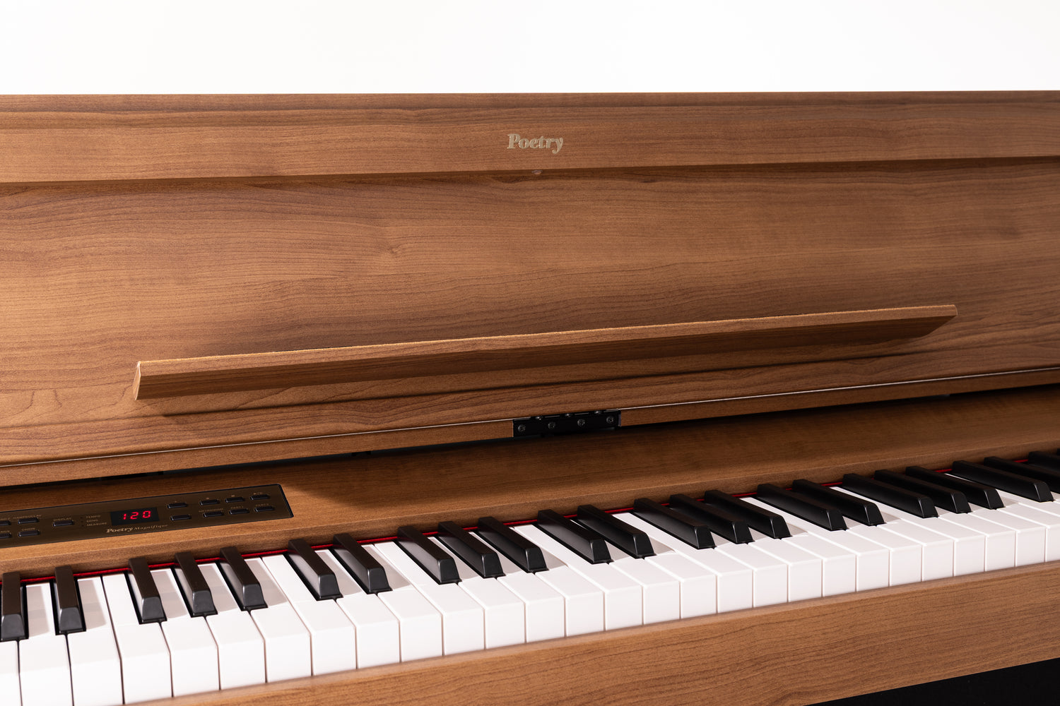 The Poetry Magnifique is a premium digital piano inspired by the timeless artistry of Frédéric Chopin. It features two iconic piano sounds, the brilliant Italian Concert Grand Piano and the historically restored 1843 PLEYEL, Chopin’s own favored instrument, captured in exquisite detail to deliver a deeply expressive playing experience. Designed with elegance in mind, its refined “Poetic Brown” woodgrain finish, solid wood panels, and smooth, flat-top lid create a sophisticated presence that complements any space.