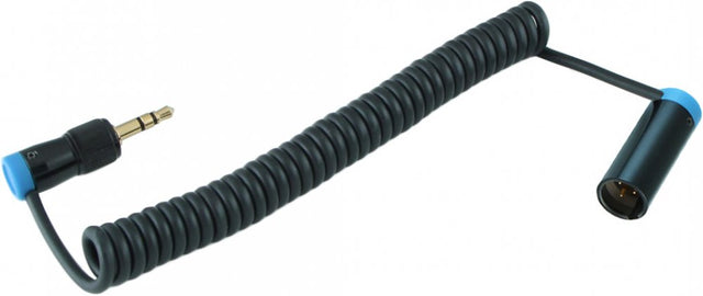 Coiled 8" to 15" 3.5mm TRS Screw-Locking Right Angle to Low-Profile TA3M "Mini XLR" 3-pin Male, Low-Profile Sennheiser EK 100 G4/G3 or RodeLink Output cable to Canon EOS C70 or Blackmagic Pocket Cinema cameras, Unbalanced, The Low-Profile connectors are ultra Low-Profile, unobtrusive and field durable. Blue color caps for easy identification.