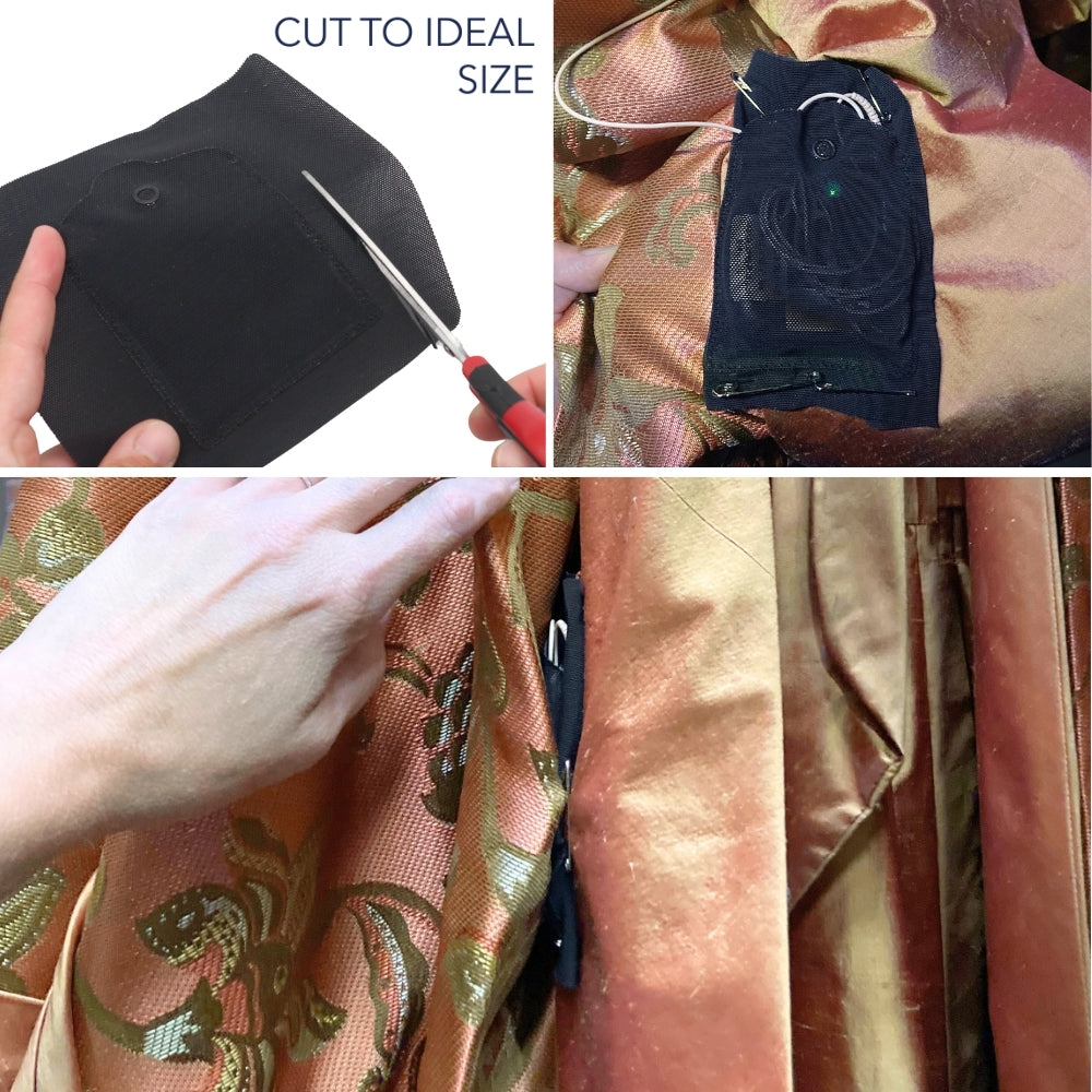 Made from durable, breathable stretch Power Mesh, the Pin-It Pouch holds transmitters firmly in place using a strong brass popper while also providing neat cable strain relief. It can be pinned, sewn, tacked, or tagged into costumes or hairnets, giving wardrobe and sound teams maximum flexibility during rehearsals and performances. Moisture-wicking and comfortable for long wear, the Single Pin-It Pouch is trusted by professional crews as a reliable, invisible mounting solution when precision, comfort, and speed matter most.