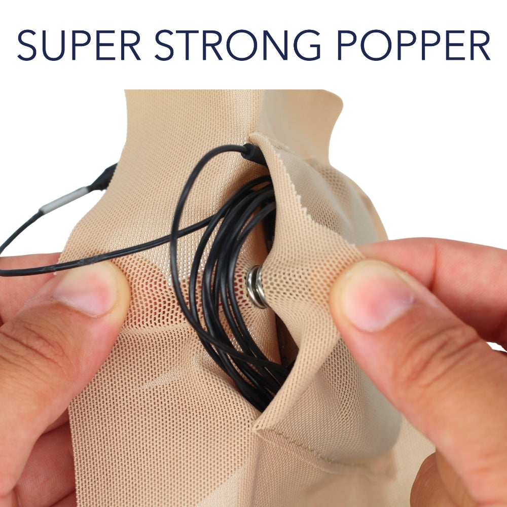 Constructed from durable, breathable stretch Power Mesh, the Pin-It Pouch holds transmitters securely with a strong brass popper while also providing tidy cable strain relief. It can be pinned, sewn, tacked, or tagged into costumes or hairnets, giving wardrobe and sound teams maximum flexibility during rehearsals and performances. Moisture-wicking and comfortable for extended wear, the Single Pin-It Pouch is trusted by professional crews as a reliable, low-profile solution for secure transmitter placement when size, weight, and invisibility matter most.