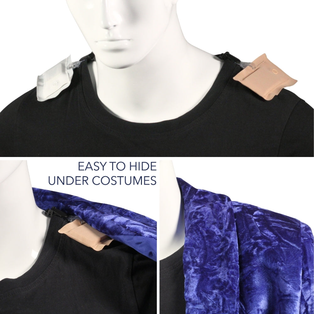 Adds minimal bulk, making it easy to hide under wardrobe or wigs.