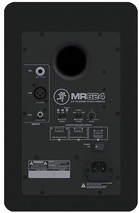 The MR624 is equipped with matched amps and drivers for an optimized 65W Class-A/B bi-amplified system. The speakers can also be optimized to your mixing environment with the adjustable acoustic space filters designed to maintain a flat response in typical placement configurations. Additionally, a high-frequency filter applies a boost or cut to compensate for particularly bright- or dull-sounding rooms.