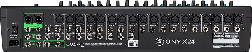 QUICKGRIP SIDE HANDLES A 24-channel mixer can be pretty hefty, but rugged QuickGrip side handles make it easy to carry your mixer between gigs. Mackie Onyx24 mixers are road-ready and built to last, thanks to the heavy-duty steel chassis and sealed rotary knobs. BUILT-IN FX The more plugins the better, right Get creative and customize your sound with professional built-in effects. The professional high-resolution FX processor gives you limitless control over a robust collection of unique digital effects, including a dedicated equalizer to shape your mix to perfection. STUDIO COMMAND There's nothing like feeling in control of your workstation. Mackie Onyx24 mixers feature powerful full-color LCDs with dedicated physical transport controls. Apply FX and recall up to six customizable presets using an intuitive single-knob interface. Record a stereo mix, browse files and play music direct to/from an SD card, all via Studio Command. BLUETOOTH STREAMING Bluetooth is a gamechanger on an analog mixer. Pair a compatible device via Bluetooth to stream audio through aux sends or the main mix. Bluetooth compatibility allows you to compare mix reference tracks or play background music when you need it. A LIGHT IN THE DARK We know the struggle"nobody likes squinting at a mixing board when the lighting is dim. Mackie Onyx24 mixers are equipped with vibrant buttons and full color display for improved visibility, even in the darkest venues. On top of that, the backlit Mute and Solo buttons provide clear visibility so you'll always know what's going on in the mix. WAVEFORM OEM DAW Waveform OEM is a multi award-winning workstation, featuring powerful and creative tools to inspire the modern musician. Unlike typical ‘Lite' versions, it does not impose any restrictions " you get unlimited track count, powerful features, compatibility with all popular plug-ins and efficient performance on MacOS, Windows, and Linux operating systems. Learn More