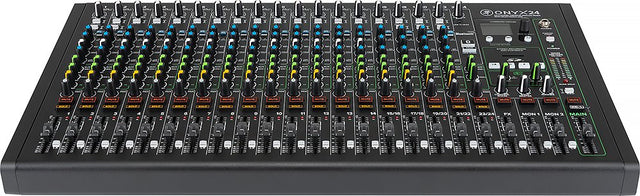 Meet the new centerpiece of your studio or live rig. The Mackie Onyx24 is a premium 24-channel USB mixer for professional multitrack recording and live sound applications. With incredible sound and a powerful digital FX engine, you'll have the ultimate solution at your fingertips.