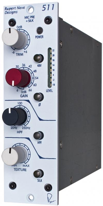 Texture One of the key developments in the 511 is the Red Silk / Texture control from the Portico II Channel. Building on the "Silk" mode found in the Portico Series mic pre-amplifiers, Texture is designed to adjust the actual amount of harmonic music content from the source material, in effect, providing wide range of tonal options for the preamplifier. Like the original Portico Silk, the Silk Red / Texture works by reducing negative feedback on the output transformer and adjusting the frequency response to more closely resemble Mr. Rupert Neve's vintage designs. With the 511, the Texture control allows these techniques to be pushed further than previous designs, adding about 10 times the desirable THD of the original silk control at its maximum setting.