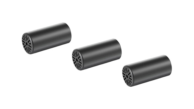 Subminiature black metal grid, 3-pack, snap-fit design with click-lock, protects 6060/6061/6066 mics from sweat and moisture, easy to remove and clean.
