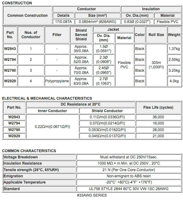 Most of these miniature cables were developed as custom cables for magnetic head leads for computer drives, which must be moved rapidly and precisely with very low force. All are very soft and highly flexible with excellent shielding.