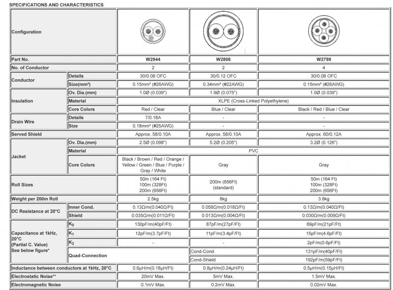All cables feature XLPE (Cross-Linked Polyethylene) which has excellent electrical characteristics and prevents shrink-back during soldering.