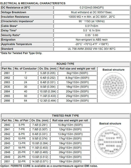 W2840 - 5pr. 28awg Twisted (price per roll - 500 feet)