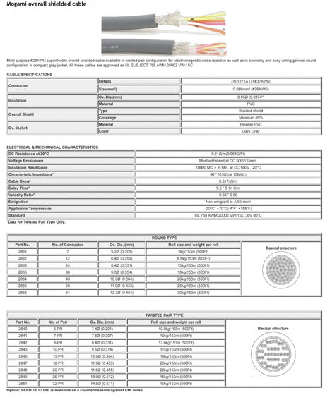 W2842 - 8 Pair 28 AWG with Overshield (price per roll - 500 feet)