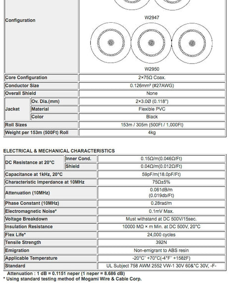 W3200 - 1c. 50ohm Superflexible Coaxial (price per roll - 164 feet)