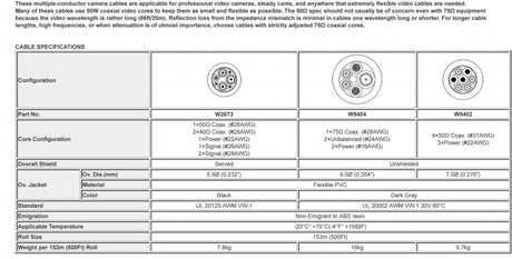 W9402 - 7c. 50ohm Camera/Monitor (price per roll - 500 feet)
