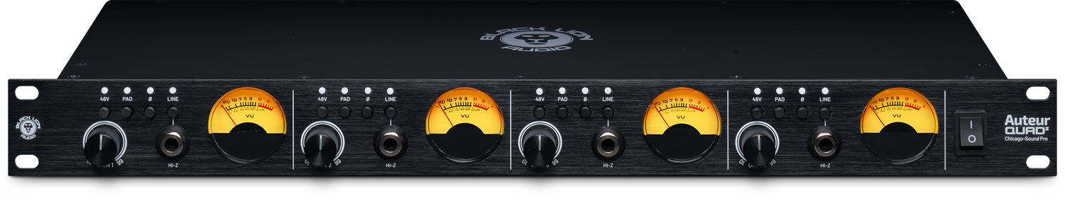 The Black Lion Audio Auteur Quad2 is a versatile and thoughtfully designed four-channel mic preamp that combines the clarity of modern engineering with the warmth of vintage analog sound. Housed in a durable 1U rackmount chassis, this boutique preamp is well suited for a wide range of studio applications. It excels at capturing detailed vocals, giving punch to drums, and adding character to guitar recordings. Its hybrid design features a transparent American-style input stage paired with Cinemag transformers on the output, which introduce a rich, British-style color to the signal.
