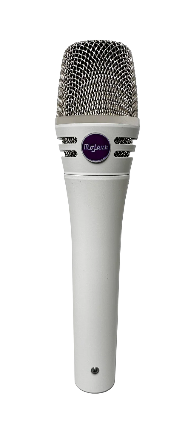The Mojave MA-CW Handheld Condenser Microphone, designed by David Royer, brings refined studio style vocal clarity to live performance in a durable handheld format. This white version offers the same trusted performance as the original while adding a clean, distinctive visual look on stage. Its precision condenser capsule is carefully voiced for vocals, delivering clear articulation, natural depth, and excellent intelligibility so singers remain present in the mix even in loud performance environments.