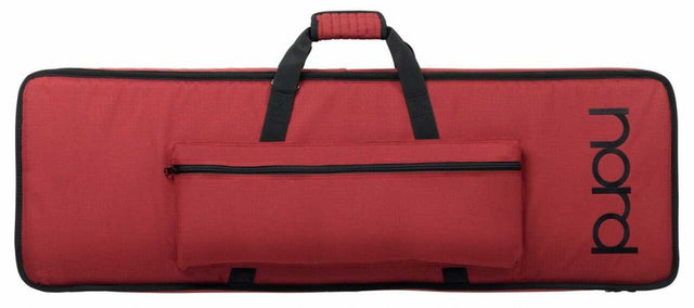 The Nord Logo GB73 Gig Bag (Red) is a soft carrying bag made to hold the Nord NE73 Electro2 73 or NS73 Stage 73 Key Keyboard. The bags has a front pocket for accessories and is carried by carrying handles, an included removable shoulder strap or hideaway back pack straps.