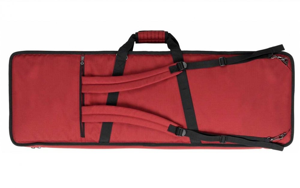 The Nord Logo GB73 Gig Bag (Red) is a soft carrying bag made to hold the Nord NE73 Electro2 73 or NS73 Stage 73 Key Keyboard. The bags has a front pocket for accessories and is carried by carrying handles, an included removable shoulder strap or hideaway back pack straps.