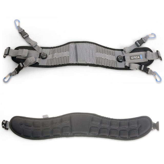 The ORCA OR-370 is an advanced, lightweight waist belt that will help you carry your small or medium sound bag on your hip without putting any pressure on your shoulders. Connected to the audio bag via four carabiners for quick connection and release it is ideal for working on outdoor location shoots. The belt is well-padded with memory foam for full comfort and can be used as a frontal holder for gimbals or boom poles.
