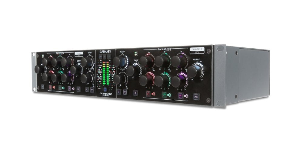 The Carnaby HE2 by Cranborne Audio is a powerful 19" rackmount evolution of the Carnaby 500 HarmonicEQ, designed to bring rich analog saturation and precise tonal control to professional audio workflows. Unlike traditional parametric equalizers, the Carnaby HE2 shapes sound using harmonic saturation, allowing users to boost or cut frequencies while adding musical warmth and depth. Its three-band HarmonicEQ circuit covers a wide frequency range, offering dynamic tonal enhancement with a natural, organic character. Whether used on individual instruments, mix buses, or entire mixes, the Carnaby HE2 provides an intuitive and flexible approach to shaping sound, making it an essential tool for producers, mixing engineers, and mastering professionals.