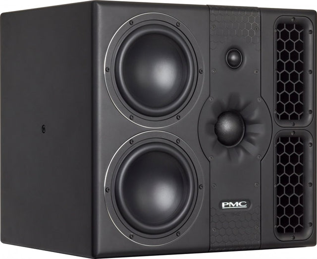 This 3-way active monitor speaker combines two custom 6-inch ultra-long-throw bass-drivers with our radically engineered PMC55 2-inch soft-dome mid-range unit and a precision-built one-inch soft-dome tweeter. The PMC55's distinctive ‘N-compass' waveguide enhances the wide dispersion and remarkable mid-range projection of the driver; in combination with the high performance of the tweeter, the result is an ultra-wide and stable image, with a smooth and natural in-room response. Each bass driver is individually powered by a cutting-edge 400W Class-D amplifier and seamlessly integrated by our sophisticated, highly accurate DSP-based crossovers. As with the PMC6, the monitor is configured using rear-panel controls or the browser-based SoundAlign software, with comprehensive boundary and EQ options.