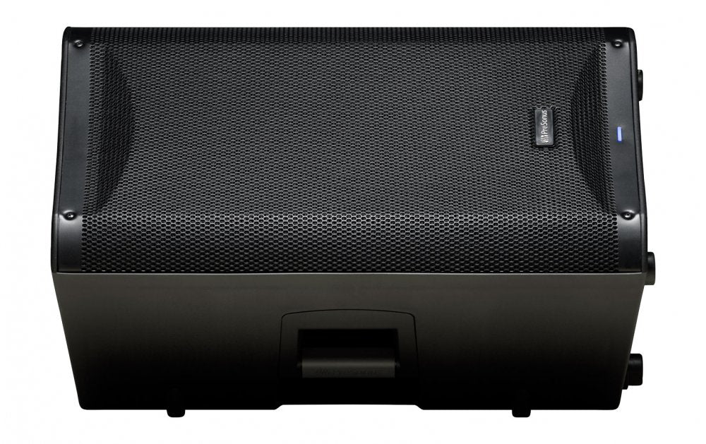 12" woofer, 1.35" HF driver, 1200W peak power, DSP with EQ and presets, dual-position pole mount, monitor wedge design, 123 dB SPL, 51 Hz-20 kHz range