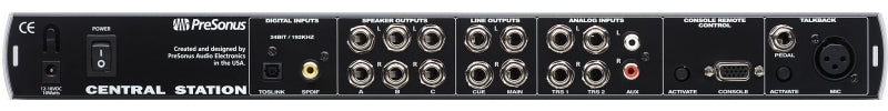 You can audition these sources with up to three pairs of speakers, with individual trim pots for each speaker. You also get two screaming-loud headphone amplifiers with individual level controls. If two sets of cans aren't enough, simply connect the line-level cue outputs to a headphone distribution system-say, a PreSonus HP2, HP4, or HP60. And because Central Station is a 1U rack-mount device, with only one multi-conductor cable running to the remote control on your desktop, all of the cabling is in the back of your rack, where it belongs.