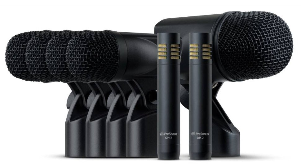 Starting with the foundation, the BD-1 kick drum mic provides a mid-cut frequency response with a slight high- and low-frequency boost to emphasize both the boom and the attack of your kick drum for tight, robust sound. The four ST-4 microphones will bring out the best in toms and snare drums while staying out of the drummer's way-thanks to the included, adjustable rim mounts. To capture the sizzle of your cymbals and the ambiance of the room, use the two OH-2 small-diaphragm condensers to add space and movement to your drums. With a useful assortment of microphones, included mounts, and a hardshell carrying case, the DM-7 drum microphone set is a single-purchase solution for any drummer, and a welcome addition to any producer or engineer's mic locker.