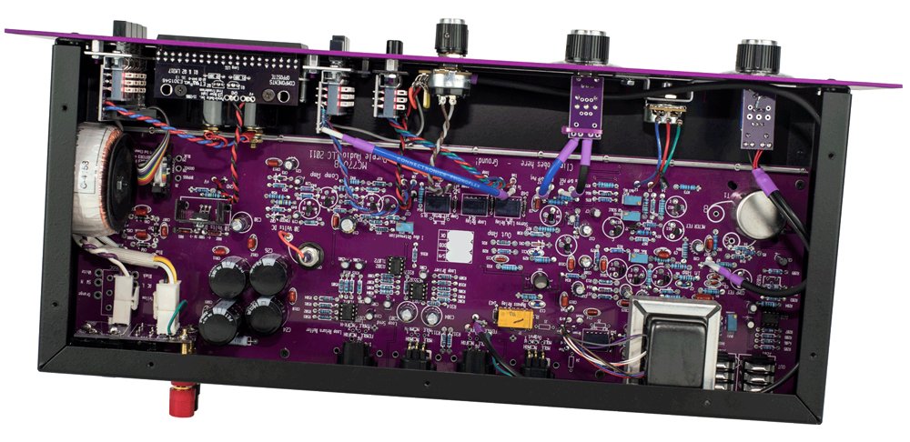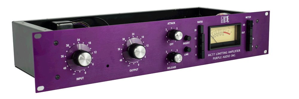 Starting in 1997 Purple started making the MC76, an 1176 type compressor base on the D & E version units. (MC is 1100 in roman numerals) At the time the 1176 was not available from any manufacturer. Coming from the repair background it was clear a better built, more road worthy unit could be build and sold new for less than the 20+ year old units that were coming through the shop. After another manufacture brought an 1176 clone on to the market Purple introduced the MC77. The MC77 added new features that were lacking from the original. Thousands of units later Purple keeps its parts and build quality high. Using parts that will last decades. Have a look inside and see for yourself. Toroidal power transformer, the best interlocking switches on the market, conductive plastic potentiometers. Quality for longevity.