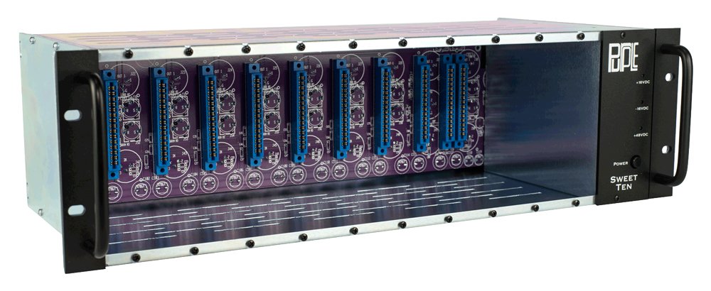 With the advancement of switching power supplies it is now possible to have a switcher that does not compromise audio performance and delivers or exceeds all specified current needs. We have spent years perfecting just such a power supply. We have comparatively tested all of our, and many of our competitors, modules at full bandwidth (10Hz - 500kHz) on lab quality over built bench supplies to make sure that the Sweet Ten is not compromising audio performance in any way. Simply put, your 500 series modules will perform at their highest level in our rack. Audio performance improvements are considerable.