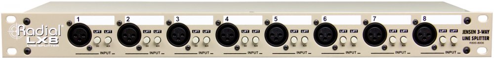 The Radial LX8 is an eight channel passive line-level isolator designed specifically to manage balanced signals in professional audio systems. Applications include splitting a source between two destinations or simply isolating devices to eliminate the hum and buzz caused by ground loops.