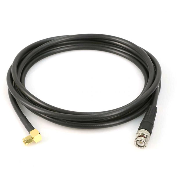 The 50 Ohm Antenna Cable from Remote Audio features an SMA right angle connector on one end and a BNC connector on the other. It can be used to connect an antenna to a receiver or distribution amplifier. The cable is built using professional-quality Amphenol and West Penn brand components.