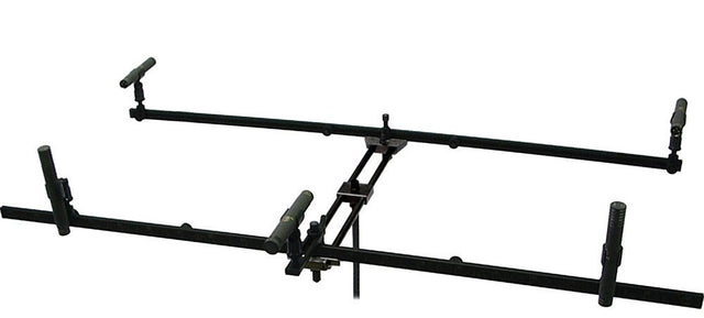 The OCT setup has a forward-facing cardioid microphone for the center channel. For the front L and R channels, two supercardioids are positioned at either end of an imaginary straight line, 8 cm behind the center microphone. The distance between these two microphones is 40 - 90 cm; this distance determines the recording angle. The supercardioids point to the left/right, so they aim at an angle of +/- 90 .