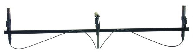 The OCT setup has a forward-facing cardioid microphone for the center channel. For the front L and R channels, two supercardioids are positioned at either end of an imaginary straight line, 8 cm behind the center microphone. The distance between these two microphones is 40 - 90 cm; this distance determines the recording angle. The supercardioids point to the left/right, so they aim at an angle of +/- 90 .
