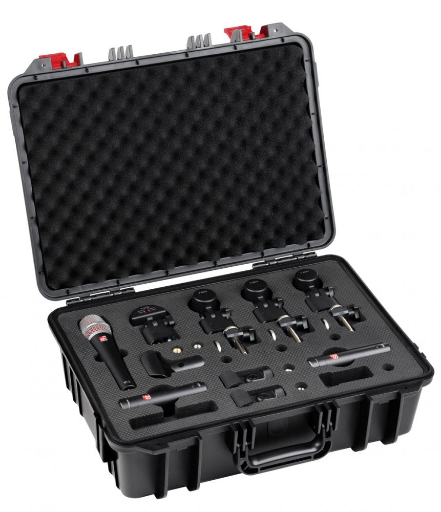 The V PACK ARENA consists of one V KICK for your bass drum, three V BEATs and V CLAMPS for your toms, one V7 X for your snare, and a pair of sE8 condensers for your overheads. All mics and accessories come securely packaged inside a robust and distinctive plastic flight case, with an empty space included to accommodate your favorite hi-hat mic.
