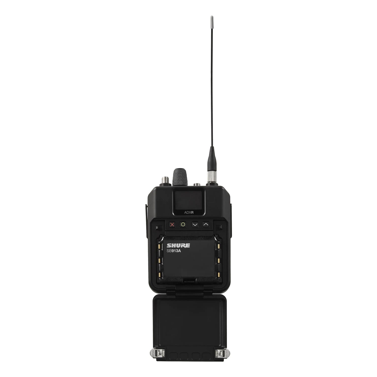 The Shure SB913A is a AAA battery sled designed to power Shure Axient Digital ADX1 bodypack transmitters and ADXR bodypack receivers using standard AAA batteries. It provides a convenient alternative power option, allowing users to operate their wireless bodypacks when rechargeable batteries are unavailable or need to be replaced during extended use.