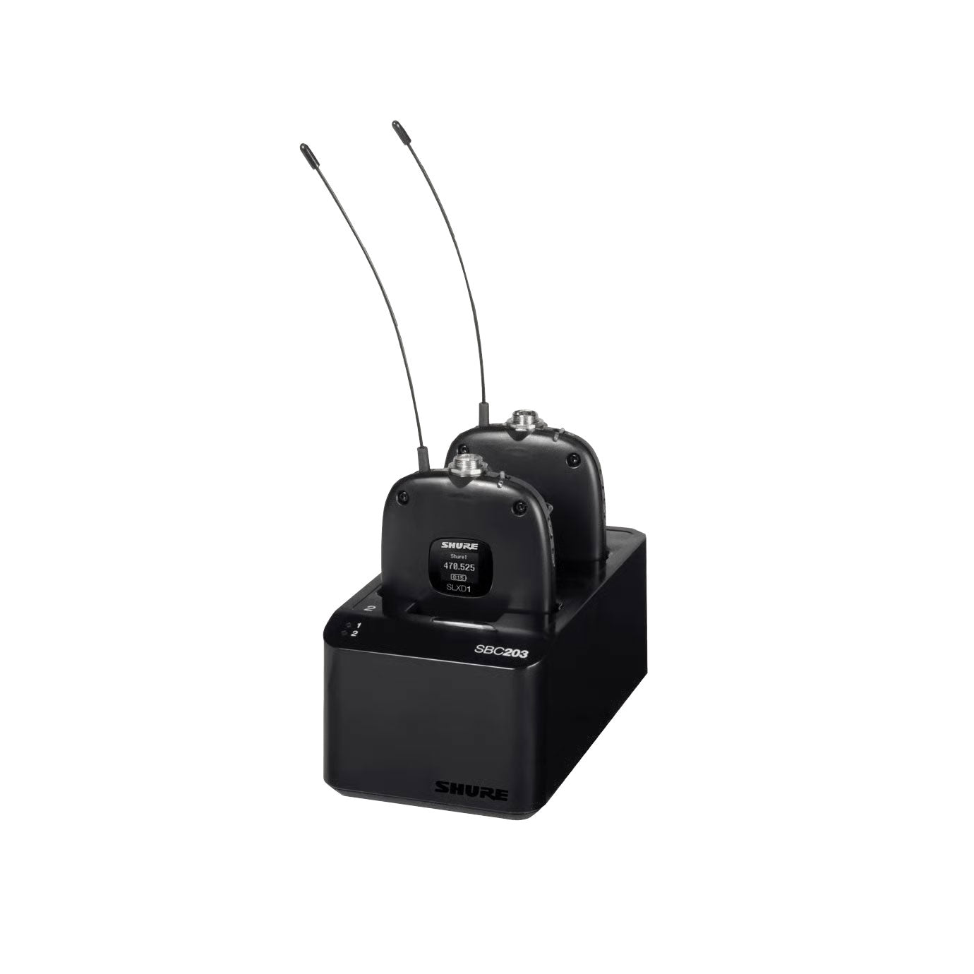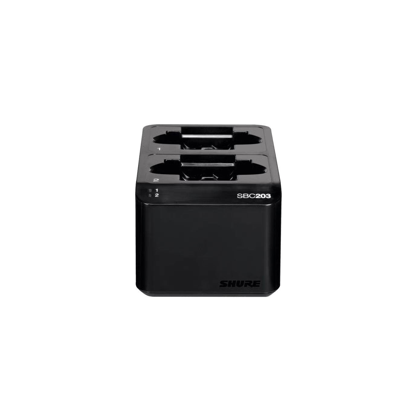 The Shure SBC203 is a compact and efficient dual docking recharging station designed to keep your SLX-D wireless system powered and ready. Whether you’re managing a live production, corporate event, or worship service, this charging station simplifies power management by allowing you to recharge two SB903 lithium-ion batteries at once either on their own or while still inside SLX-D transmitters. Its flexible design supports bodypack and handheld transmitters alike, making it a versatile addition to any audio setup.