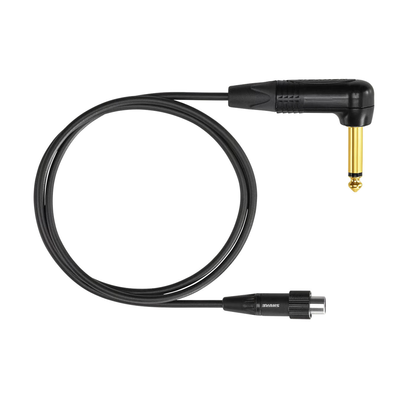 A key difference in this model is its right-angle 1/4-inch Neutrik connector, which is ideal for instruments with side or front-mounted jacks. This design keeps the cable neatly routed and reduces strain on the connection, making it especially useful for active performers. On the opposite end, the cable includes a locking REAN TA4F connector with a threaded collar, ensuring a secure connection to compatible Shure bodypack transmitters.