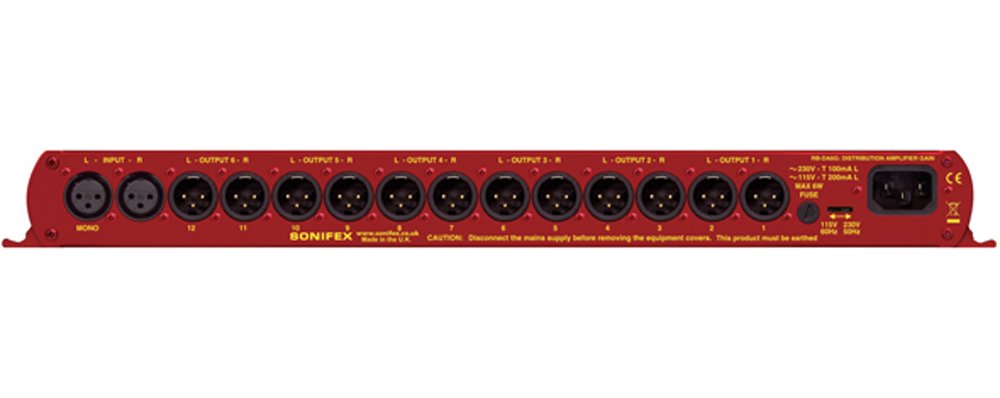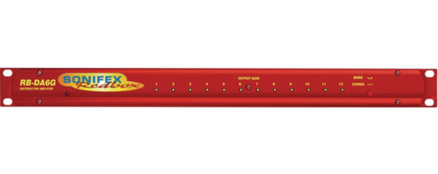 The Sonifex RB-DA6G is a 1U rack-mountable, high-performance 6-way stereo distribution amplifier designed to split a single audio source into multiple outputs. It features one stereo input and six stereo outputs, with the flexibility to configure a mono input for distribution to twelve outputs via a recessed front-panel switch, preventing accidental activation. Each output has its own discrete gain control, allowing precise level adjustments to match various destination requirements. The electronically balanced XLR inputs and outputs can also accommodate unbalanced connections, and each output is individually buffered to ensure that a short circuit on one output does not affect the others. This design ensures reliable operation in professional audio environments, making the RB-DA6G an ideal choice for distributing audio signals across multiple destinations in broadcast and studio settings.