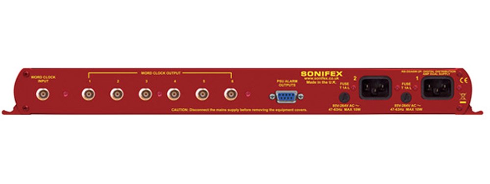 The Sonifex RB-DDA6W-2P is a 1U rack-mountable 6-way word clock distribution amplifier designed to distribute a single word clock BNC input signal to six reconditioned BNC outputs. This functionality is essential for providing reference clocks to multiple digital audio devices within a professional setup.