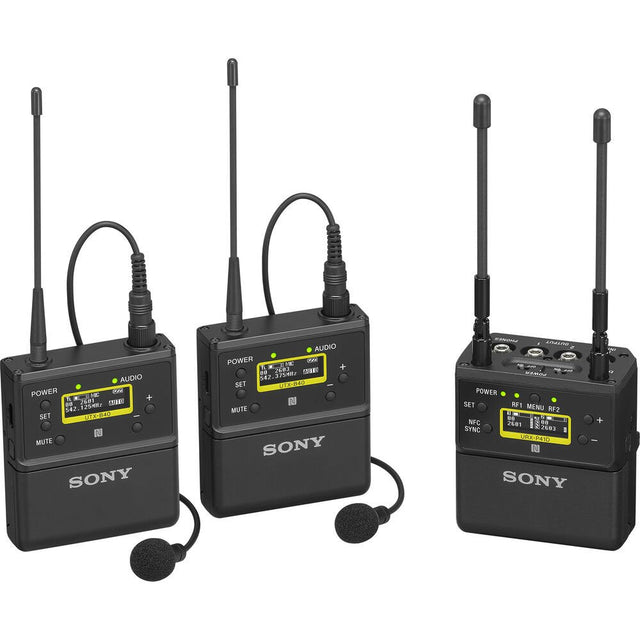 Explore the UWP-D27 wireless bodypack microphone package The UWP-D27 is a complete wireless audio package that's ideal for on-camera interviews, live presentations and other applications where you need to capture crisp, clear sound with minimum fuss. The ECM-V1BMP omni-directional lavalier microphone connects to the light, compact UTX-B40 bodypack transmitter that's worn by an interviewee. Audio is transmitted wirelessly to the URX-P41D 2-channel portable receiver, with quick and easy wireless pairing between transmitter and receiver. An optional Multi Interface Shoe Adaptor simplifies audio recording with compatible Sony cameras and handheld camcorders.
