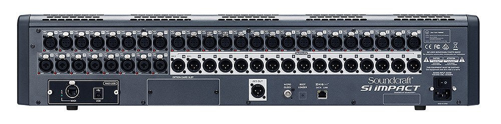 Flexible onboard and expansion I/O options ensure the Si Compact integrates effortlessly with other system components; along with the 24 mic inputs there are two pairs of stereo analogue line in, AES in and out, 16 analogue line outputs, headphone monitor out and a 64x64 channel expansion card slot capable of utilising any of the Si series option cards that includes AES, AVIOM, CobraNet and MADI. The MADI card, as well as being an interface to multi-track recording systems enables linking the Si Compact to the Soundcraft/Studer stageboxes which extend the I/O power and flexibility; but all this power is nothing without control and here lies the core strength of the Si Compact; a comprehensive but 'simple to use' control surface.