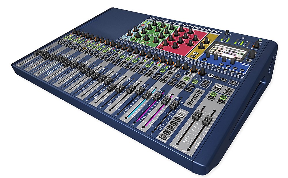 The Si Expression 3 features 32 recallable mic pre amps plus 4 line inputs, 4 internal stereo FX returns, AES in, and a 64x64 expansion slot.