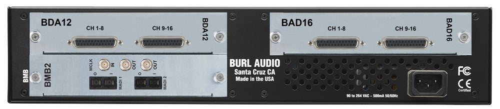 The Burl Audio B16-BMB2-M3 Mothership is a 16-channel converter tailored for MADI systems. Featuring the BMB2 motherboard, it allows seamless integration with MADI, offering flexible connectivity for studios needing high-performance audio solutions. The included M3 card delivers 8 channels of top-tier analog-to-digital conversion, enhanced by Burl's BX1 transformer, giving recordings a rich, analog warmth. Ideal for professionals looking for premium sound and MADI compatibility, the B16-BMB2-M3 combines exceptional audio fidelity with the modularity and flexibility Burl is renowned for.