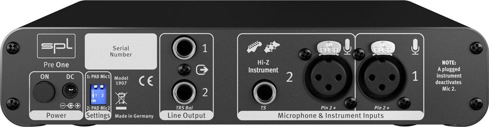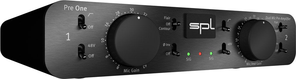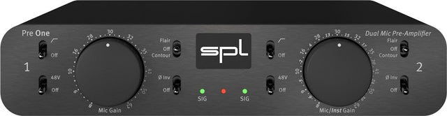 The SPL Pre One is a high-performance dual-channel microphone preamplifier designed to deliver outstanding sound quality through its discrete technology. Ideal for both professional audio recording and live performances, the Pre One is equipped with two preamplifiers that ensure an open and transparent sound, perfect for capturing the nuances of both vocals and instruments. One of its standout features is the inclusion of a Hi-Z instrument input, allowing instruments like electric guitars to benefit from the high-quality preamp sound, making it versatile for a variety of recording setups.