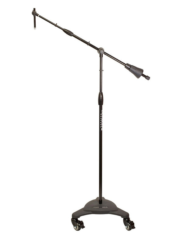 The MC-125 professional studio boom stand's larger-diameter base and locking, rollerblade-style wheels provide a low center of gravity and extra stability. Smoothly raise or lower height from 52" to 83" with a reliable clutch. The long boom telescopes from 35" to 61" and features a friction-free clutch arm extension. Also includes a unique, easy-adjust 5.75-lb. counterweight for a stable microphone placement. And the threaded shaft and boom sections provide quick set up and tear down for easy transport and storage. The MC-125 is in a class all its own.