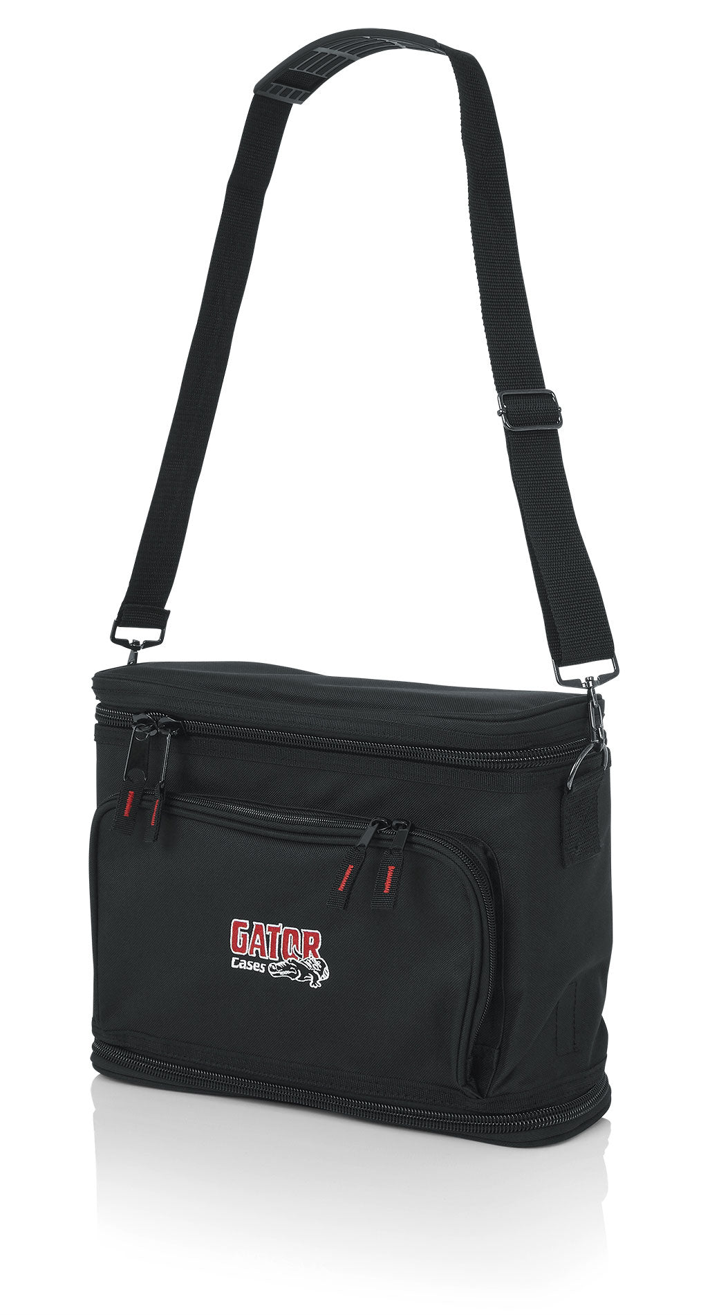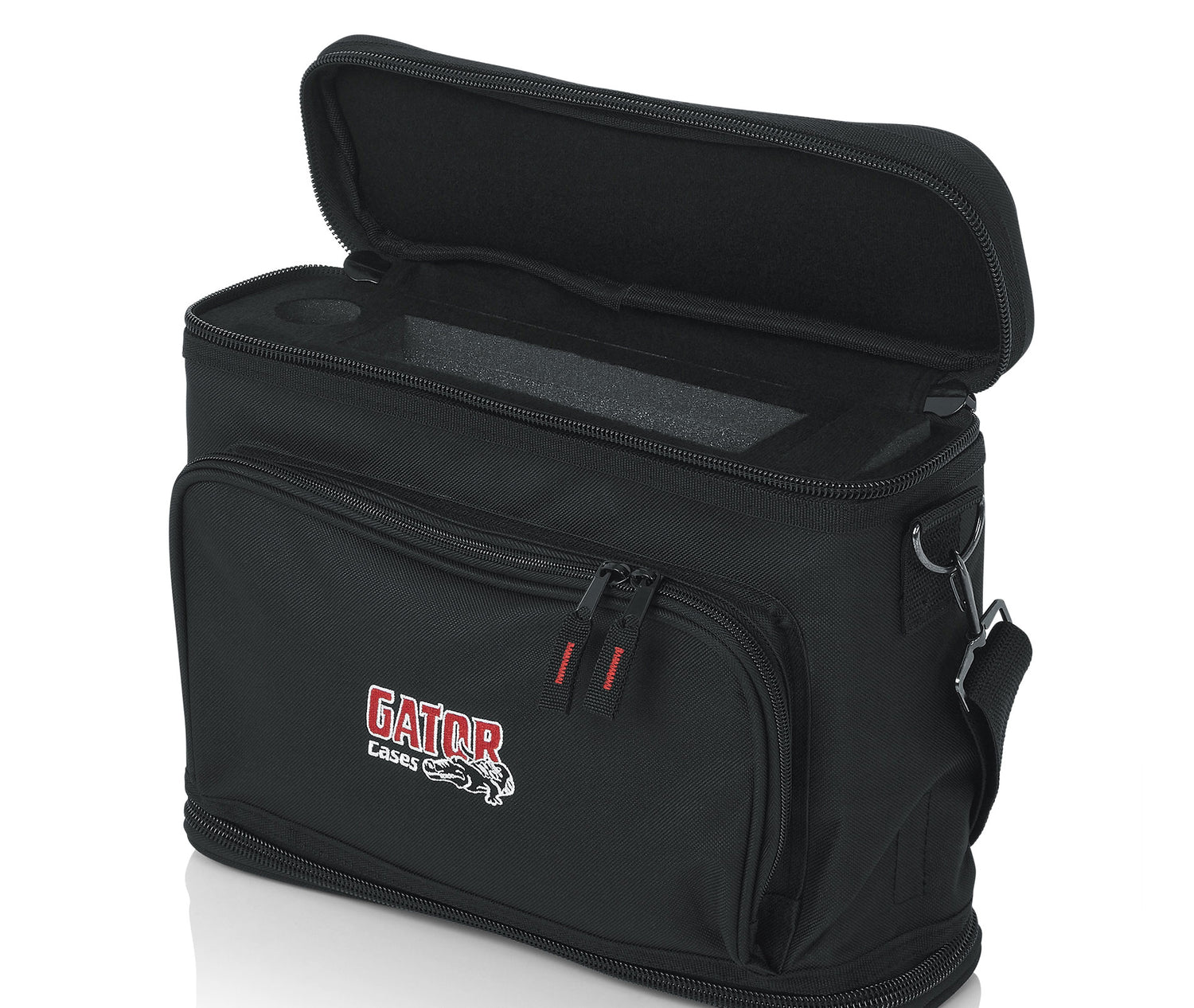 The Gator GM-1W is a compact, live-in style padded carry bag designed to house a single wireless microphone system, making it ideal for performers, presenters, and technicians who need a quick, organized setup on the go. It fits one wireless receiver, a bodypack transmitter, and a handheld mic, with antenna access and operation while the receiver remains in the bag.