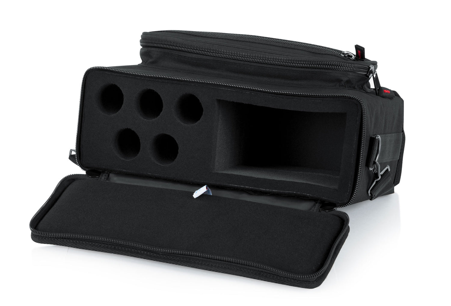 Constructed from durable 600-denier nylon, the GM-5W includes a large main compartment for housing receivers, microphones, and essential accessories. The interior layout ensures each system remains secure and easily accessible during setup or breakdown.