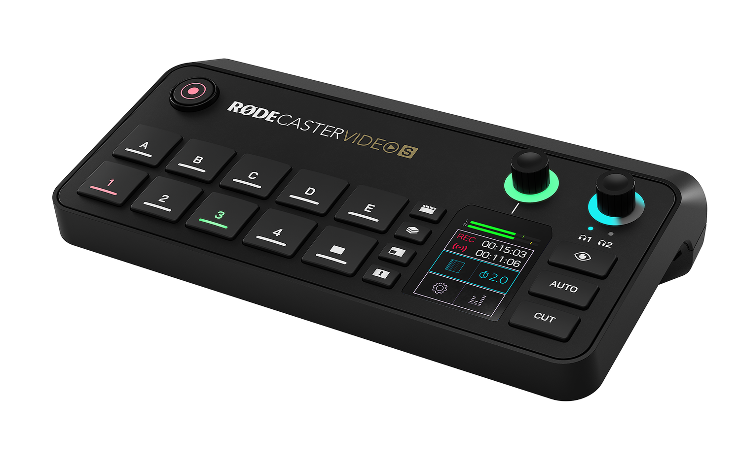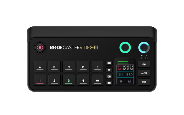 The RØDECaster Video S is a professional production console that combines video switching, audio mixing, and recording in a compact, desktop-friendly design. Built for content creators, podcasters, and live streamers, it offers intuitive control over video and sound, simplifying multi-camera shoots, studio recordings, and streaming workflows. Users can switch between up to four video sources, create up to five custom scenes, and control everything using a responsive touchscreen and tactile buttons.