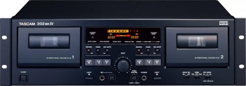 The 202mkIV dual cassette deck is ideally suited for both dubbing and continuous-looping playback applications. Two twin-head cassette decks in a durable rack-mount housing can be used separately or in tandem during recording and playback. Additional features include dual recording speeds, computerized program search and other functions that make editing tapes quick and easy.